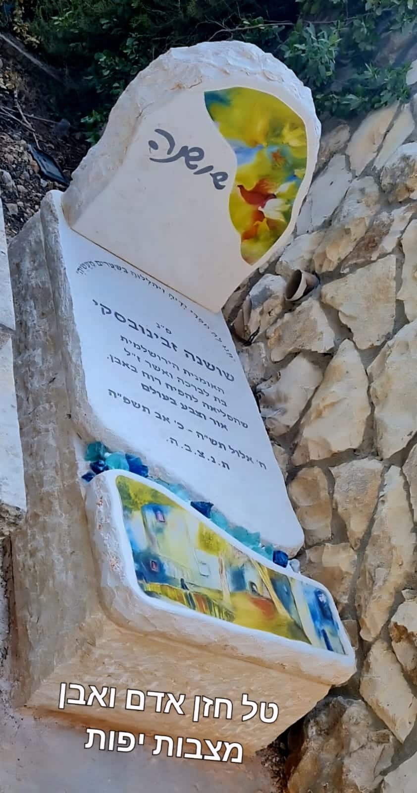 לאברהם ז"ל היו עיניים ירוקות. במצבה שלו יצרתי מגן דוד מאבני פסיפס בצבע טורקיז.